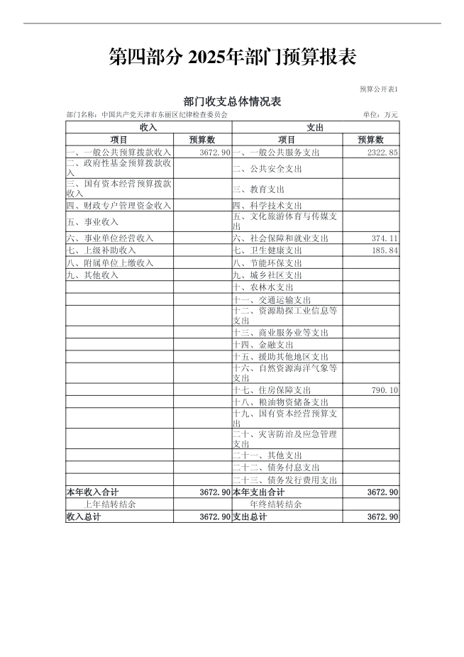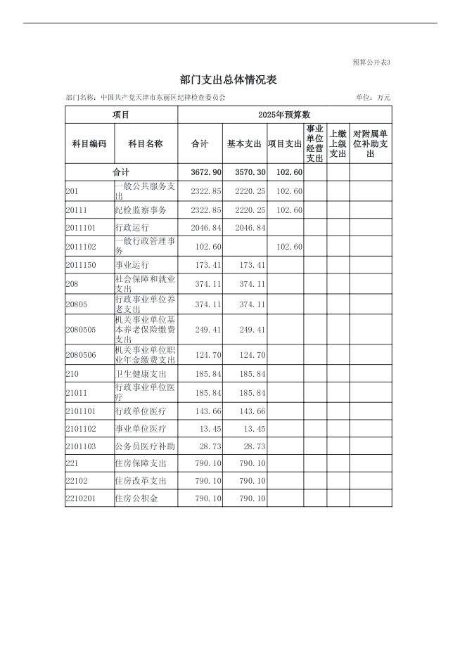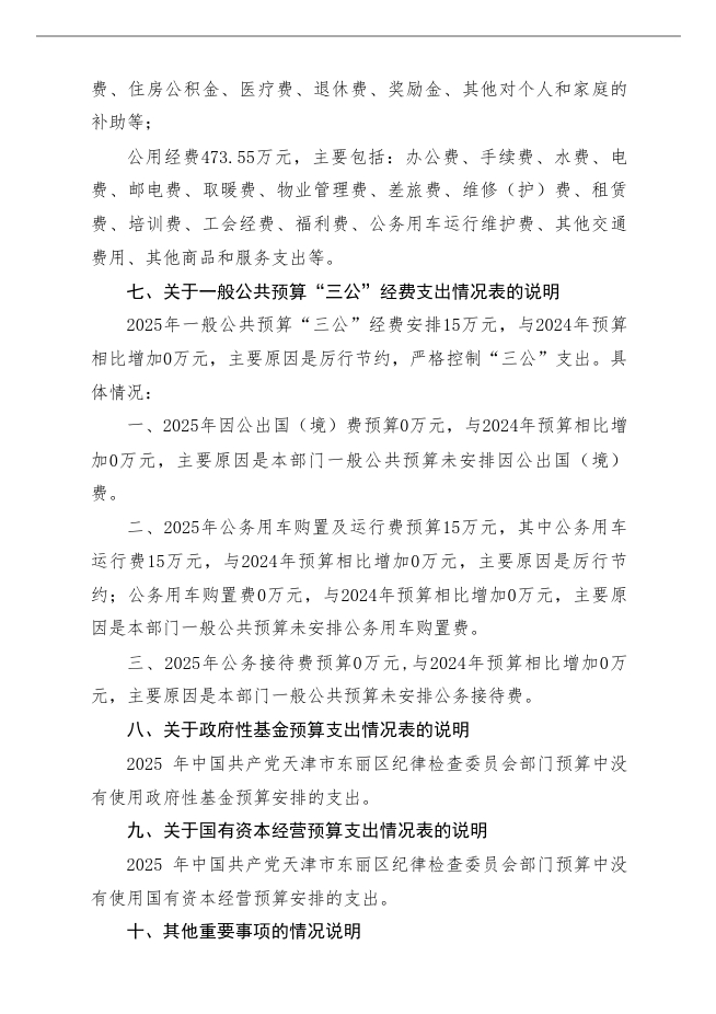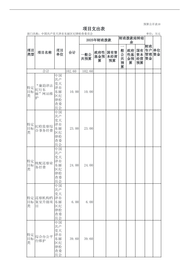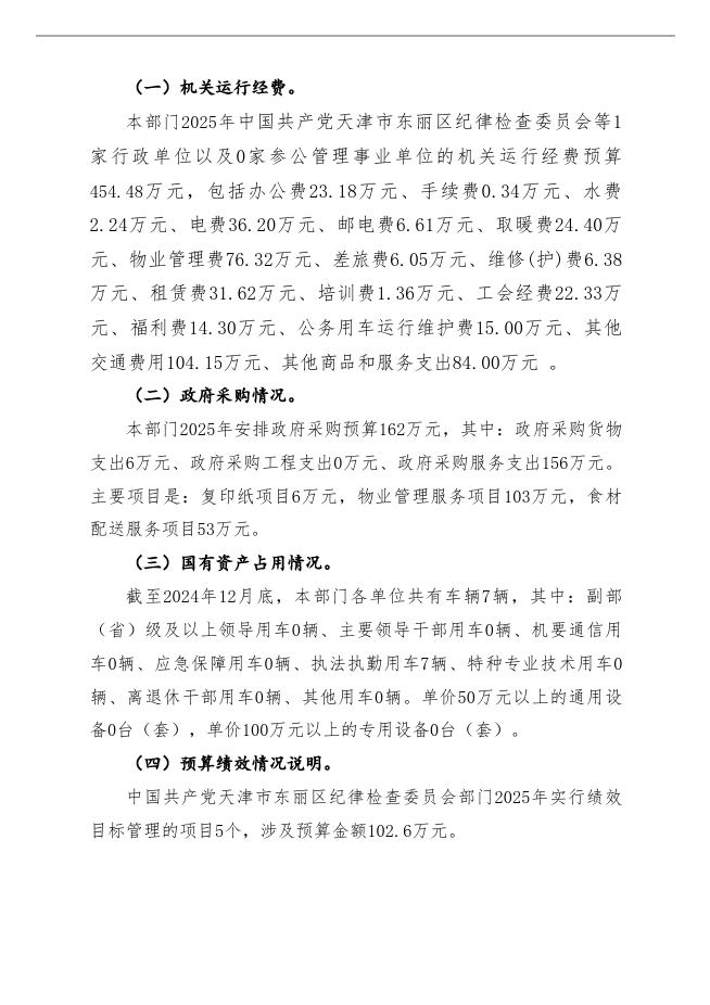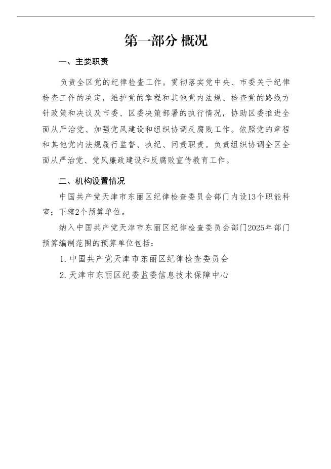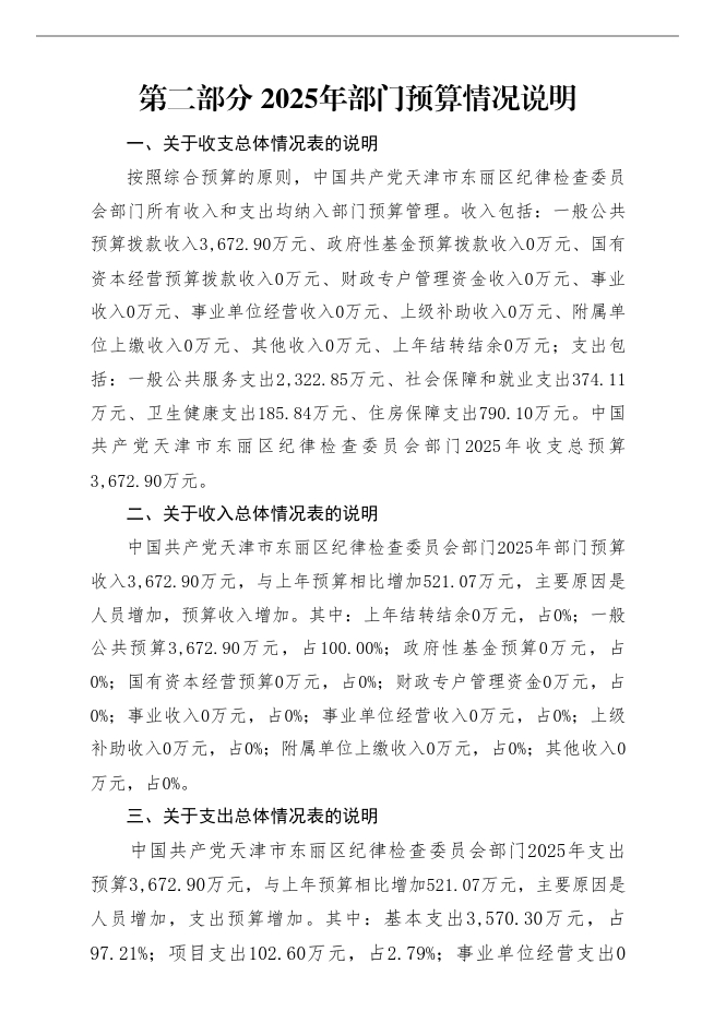 中国共产党天津市东丽区纪律检查委员会2025年度部门预算公开